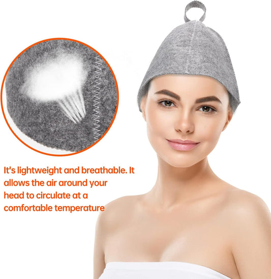 Original Wool Sauna Hat for Women and Men 2 Pack Natural Felt Sauna Accessories (Grey)